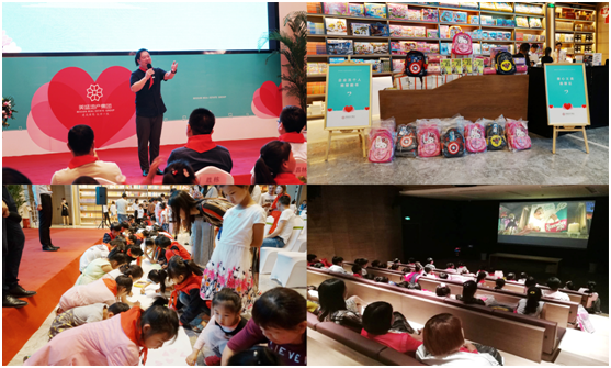 此次活動由美盛地產集團主辦,新華書店國基路美盛店、商丘唐學元希望小學、FM91.2協辦。經過近一個月的精心籌備,繽紛活潑的學生畫展、氣氛熱烈的愛心義賣、91.2知名主持人楊辰精心準備的主題公開課、各方愛心匯聚的捐贈儀式、學校師生現場共同繪制的十米畫卷以及新華書店精心安排的參觀講解和主辦方準備的兒童觀影活動讓在場的孩子們的度過了一個意義非凡的六一兒童節。