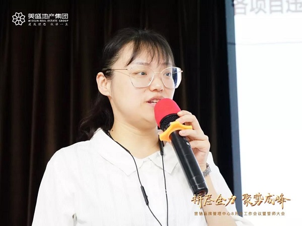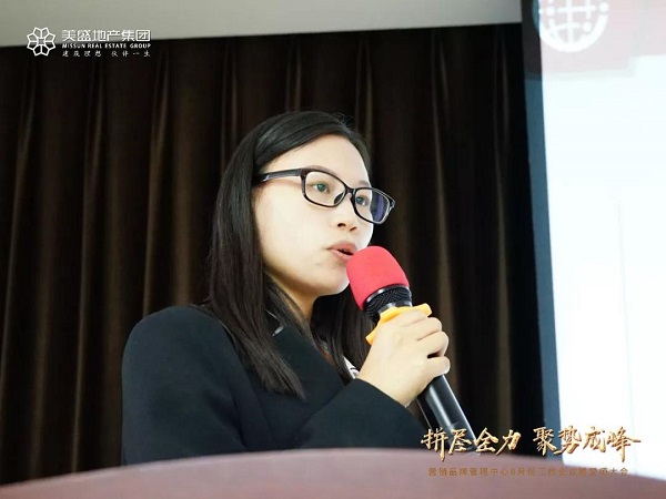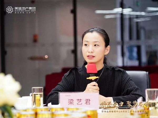 美盛地產集團營銷管理中心總經理梁藝君女士在會議上表示:"面臨著8月份新目標以及年終業績目標,各項目營銷負責人,在集團高戰略、快發展的目標下,要時刻保持對業績的敬畏之心,敏感洞察當前房地產市場。"