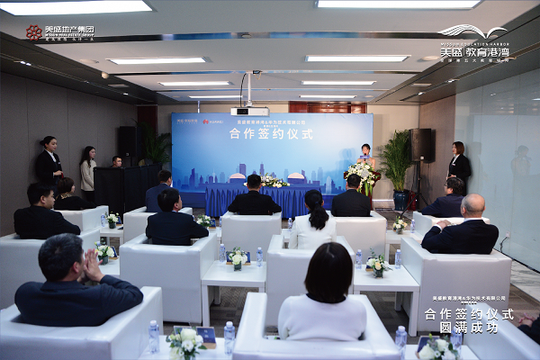 城市智慧未來,全城共鑒這一刻。美盛地產集團代表胡漫天先生與華為代表王朋先生順利完成簽約儀式。
