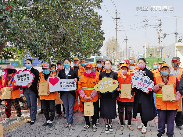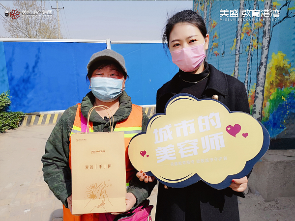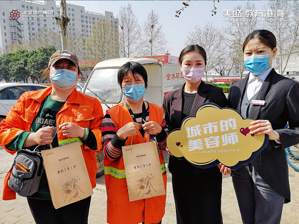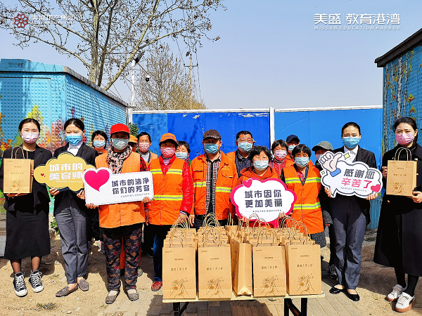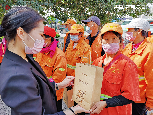 心懷感恩之情,3月20日,美盛教育港灣團(tuán)隊(duì)走到街頭一線,慰問那些堅(jiān)守崗位一線的環(huán)衛(wèi)工作者,為守護(hù)他們的健康送上一份防疫大禮包。
