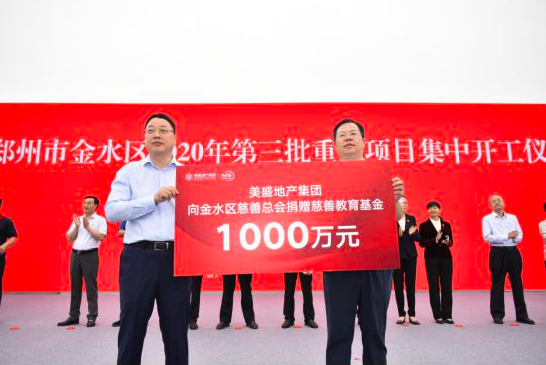 開工儀式現場美盛地產集團常務副總裁徐建民代表美盛地產集團向金水區慈善總會捐贈1000萬元教育基金。