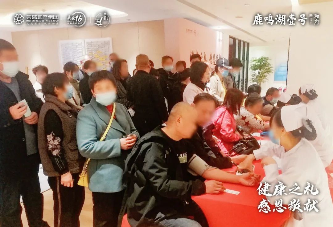 現場前來體檢的業主不斷,鹿鳴湖壹號現場工作人員全程實時維護著現場秩序,保證體檢有序快速的開展。