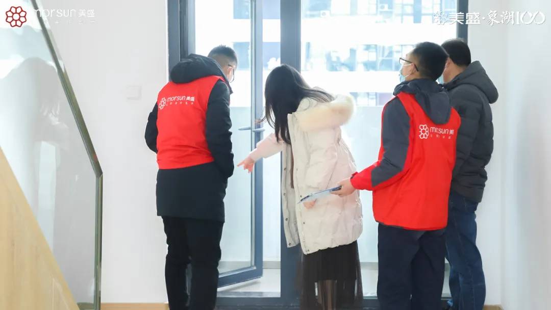 交付現場,每一位工作人員都秉持著專業態度和熱情服務,嚴謹且細致。流程區手續辦理完畢,則由陪驗人員陪同業主前往新家,途中悉心介紹公共設施配置、景觀設計等,讓業主對新家有了更全面的了解。整個驗房過程中,耐心為業主答疑解惑,認真傾聽業主訴求并詳實記錄,全程物業、工程、客關、財務等各條線通力配合,以細心服務護航幸福生活,只為給業主鋪就一條安心、放心、省心的歸家之路。