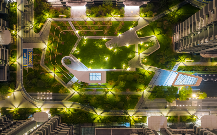 舉目環(huán)顧,飽含設(shè)計(jì)者智慧與巧思的圍合式排列建筑,帶來(lái)開(kāi)闊視野,中心區(qū)域打造景觀大中庭消弭了建筑的壓迫感,充足的戶外空間、起伏有致的坡地景觀,讓開(kāi)闊感與通透感撲面而來(lái)。