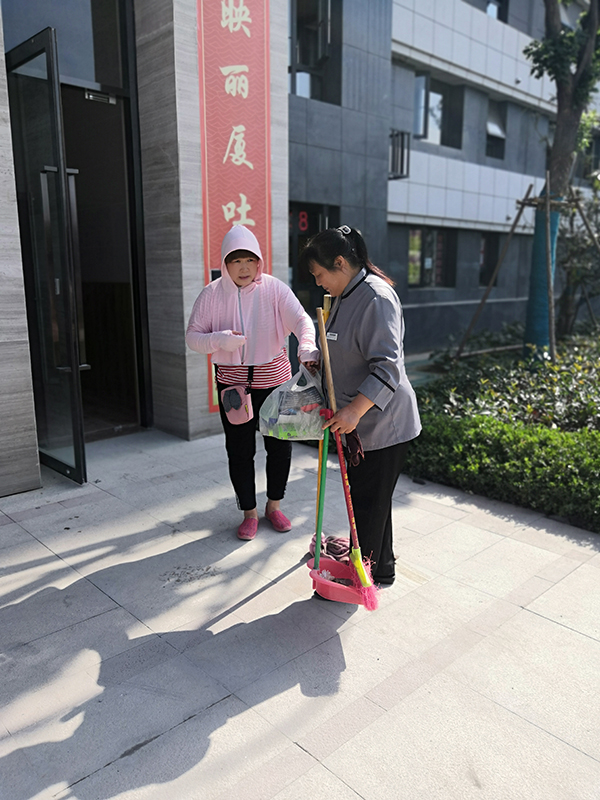 就像她文章里寫到“保潔工作雖然平凡,但我們是這個(gè)城市的美化師。”前期廟李家園東苑剛剛交房,裝修比較密集、頻繁,裝修垃圾與灰塵灑落需要不停地打掃,干起活來(lái)風(fēng)風(fēng)火火的尚大姐,每天都要把整棟34層的樓打掃一遍。