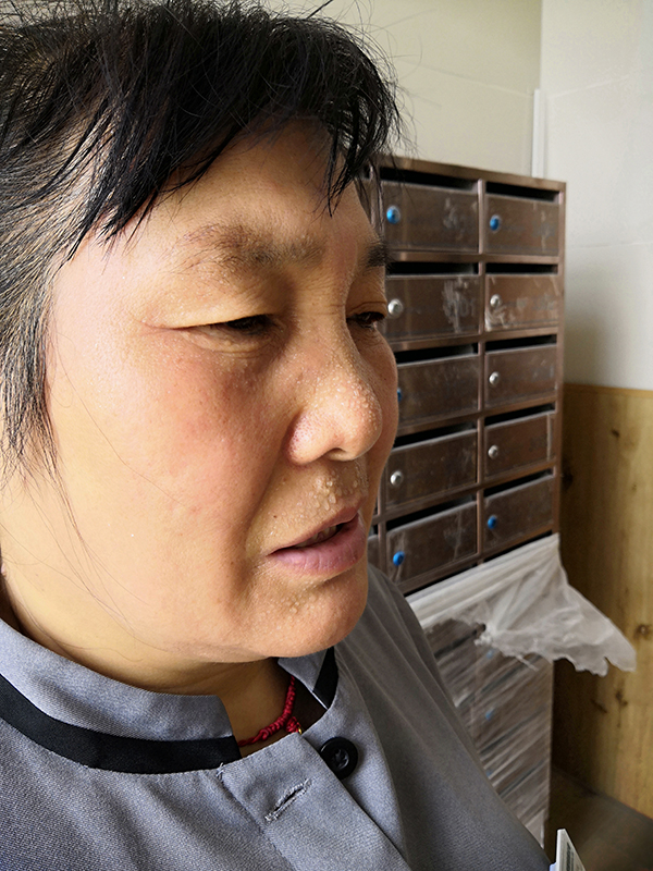 尚大姐負(fù)責(zé)廟李家園東苑7號(hào)樓2單元一個(gè)34層的高層住宅。在這集中交付裝修高峰期,她日復(fù)一日,每天提前來(lái)到工作崗位,對(duì)自己的工作區(qū)域,進(jìn)行衛(wèi)生日常清潔、打掃、開荒工作。2019年7月23日大暑時(shí)節(jié),經(jīng)過(guò)一夜的空氣沉淀不流通,加上裝修污染,樓道空氣混濁,高強(qiáng)度工作下,尚大姐有些中暑,喝了物業(yè)中心送來(lái)的解暑藥品,逐漸轉(zhuǎn)好。在公司強(qiáng)烈要求其需要回家好好休息時(shí),尚大姐有所好轉(zhuǎn)站起身,又迅速投入到自己的工作崗位。她用樸實(shí)的語(yǔ)言說(shuō):“我休息一會(huì)就行了,現(xiàn)在裝修多,我要多巡視。”