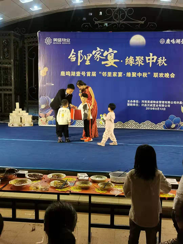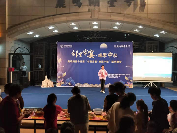 農(nóng)歷八月十五,是人人皆知的中秋節(jié)。至中秋,菊黃桂香。在這樣一個(gè)歲月沉淀感悟、彌漫神話色彩的日子里,為豐富社區(qū)業(yè)主的業(yè)余生活,為大家在緊張的工作之余,放下身外的繁雜充分放松、享受節(jié)日的快樂,共同創(chuàng)造和睦的鄰里空間,便于服務(wù)中心更好的管理與服務(wù),塑造小區(qū)品牌形象,共建和諧家園。在中秋節(jié)到來之際,鹿鳴湖壹號(hào)物業(yè)服務(wù)中心特開展“鄰里家宴·緣聚中秋”聯(lián)歡晚會(huì)。