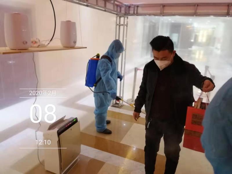 從1月22至今,日常消殺消毒工作中,每天早上負責進出口“鞋底消毒”工作。高峰期過后,他又背起每桶30公斤消毒劑出現在公共區域及業主戶內進行消毒,并提醒業戶注意事項,完成消毒工作后,樓層的清潔巡視也是每天的重要工作。
