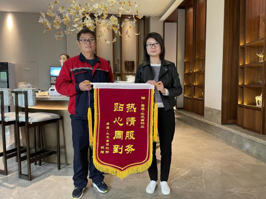 于2020年11月14日下午兩點左右,北龍臺策劃部主管呂倩同志贈送物業(yè)部“熱情服務,貼心周到”錦旗一面,為什么要給物業(yè)送錦旗呢?允許我賣個關子,看到下面內容你就明白了。