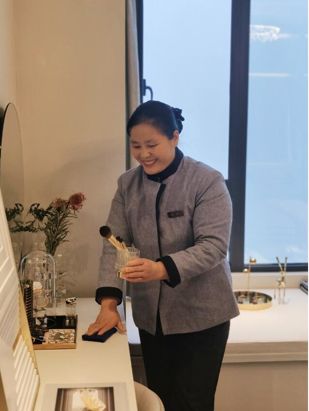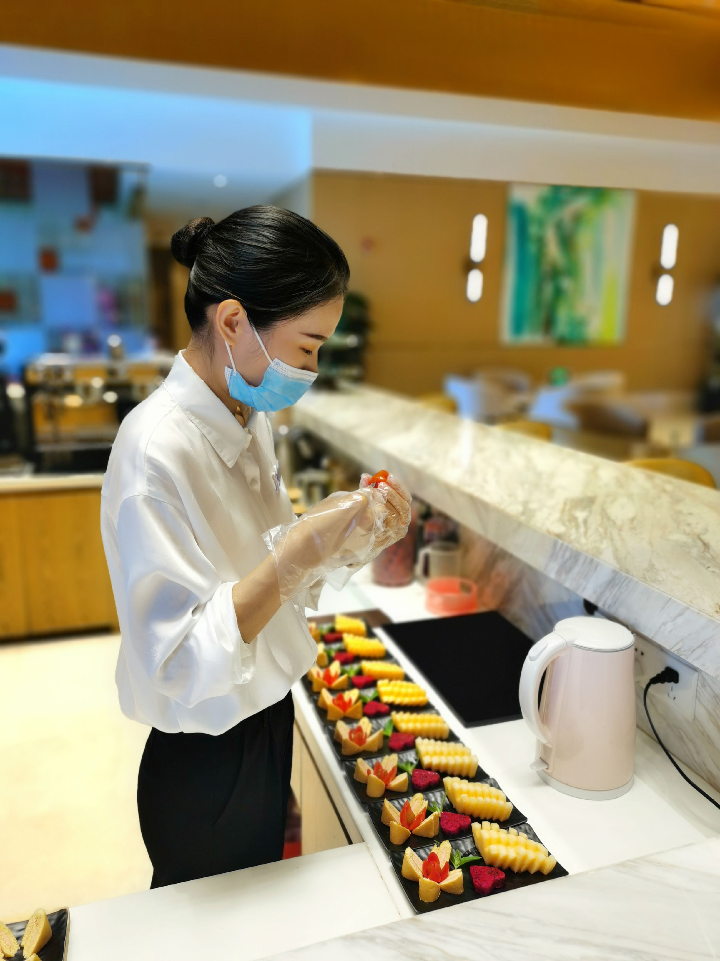 美盛象湖100客服部呂金,2020年4月初入職美盛象湖100,剛來就開始忙著售樓部開放等工作,時間緊任務(wù)重,從組建團隊、挑選物資、客服禮儀培訓、技能培訓、飲品創(chuàng)意、點心制作和公司各項制度培訓、文件整理等,都要自己親力親為,一個月下來竟無意間瘦了八斤,一切的努力換來項目的順利進行!對她來講八點能下班是一種奢侈,十點能離開售樓部她就會很滿足,工作忙完之后,還要擠時間去翻閱雜志或者上網(wǎng)搜索關(guān)于點心和飲品的創(chuàng)意制作,不同的季節(jié)需要不同的飲品和點心,只希望做出來呈現(xiàn)給客戶的成品,能讓人發(fā)自內(nèi)心的滿意,為項目增添色彩!