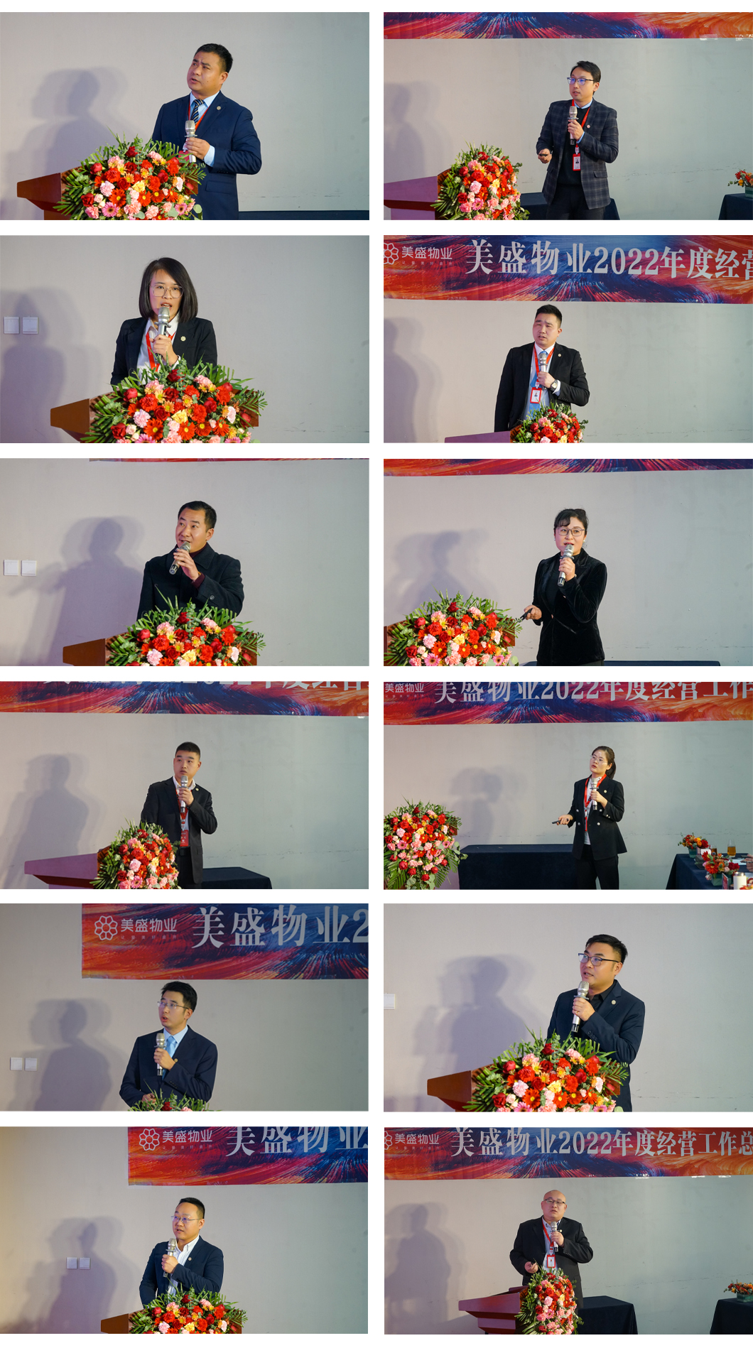回首2022,總結經驗;展望2023,共筑美好。各大區、各職能中心負責人分別匯報2022年度經營總結及2023年工作規劃。